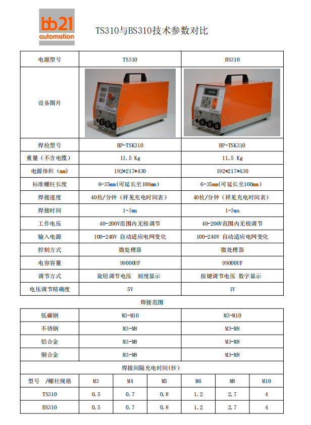 TS310與BS310技術參數(shù)對比